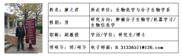 目前主持国家自然科学基金面上项目1项、福建省自然科学基金面上项目1项和横向课题2项,主持校级教改课题1项(已结题),曾主持省基金2项(均已结题),参与国基4项和多项省部级课题。参编《生物化学》教材等3部,参译图书1部,其中参编《生物化学》(第四版,人民卫生出版社)荣获首届全国教材建设特等奖(证书编号:GJC-Z-T-2021003)。以第一作者或通讯作者发表中英文论文30余篇,其中SCI论文14篇。主要研究方向为肿瘤生物化学与分子生物学、基因芯片与数据挖掘、生物信息学和机器学习的应用等。已指导毕业硕士生7名(含同等学力2名),目前在研6名。中国计算机学会专委会委员,中国生物工程学会专委会委员,中国人工智能学会会员。