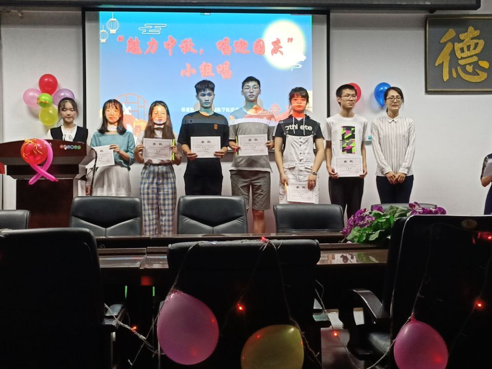 此次活动分为两轮赛制进行。第一轮为自选歌曲演唱,两两小组互相竞争,票数高者晋级。其中,阙嘉瀚组和韦沛彤组票数一致,双双晋级。至此,第一轮共七组选手晋级。第二轮比赛中,晋级的七组选手需演唱规定歌曲,并由第一轮淘汰的选手进行投票后决出胜负。歌曲《一样的月光》与《但愿人长久》,带大家进入秋的思念,寄托了美好的祝愿;歌曲《红旗飘飘》《歌唱祖国》《中国人》,又带大家体会到身为中国人的自豪以及欢度国庆的喜悦。此外,比赛期间还穿插了歌词接龙的游戏环节,更加活跃了现场的气氛。经过参赛选手们的倾情演绎,林金玉组获得一等奖;韦沛彤组和阙嘉瀚组获得二等奖;其余晋级第二轮的选手获得三等奖。最后,任秀琼老师为获奖同学颁奖并带来祝福寄语。