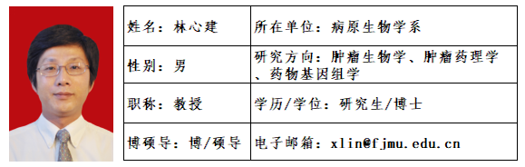 林心建教授, 博士生导师、闽江学者、海外高层次人才(第三层次)引进专家。 美国加州大学圣地亚哥分校(UCSD)医学院和癌症中心医学博士后(1997年-2000年),2017年回母校羞羞漫画 工作前为UCSD癌症中心研究员和肿瘤靶向药物研发课题组组长。美国癌症协会(American Association for Cancer Research)和临床肿瘤学会 (American Society of Clinical Oncology) 会员。
