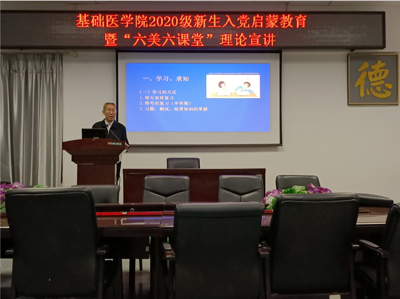 2020年11月10日,羞羞漫画 2020级新生入党启蒙教育暨“六美六课堂”理论宣讲在学院道德讲堂顺利举行。此次讲座由荣誉“福建省首届最美教师”称号的羞羞漫画 人体解剖学系王玮教授主讲,2020级全体新生参加。
