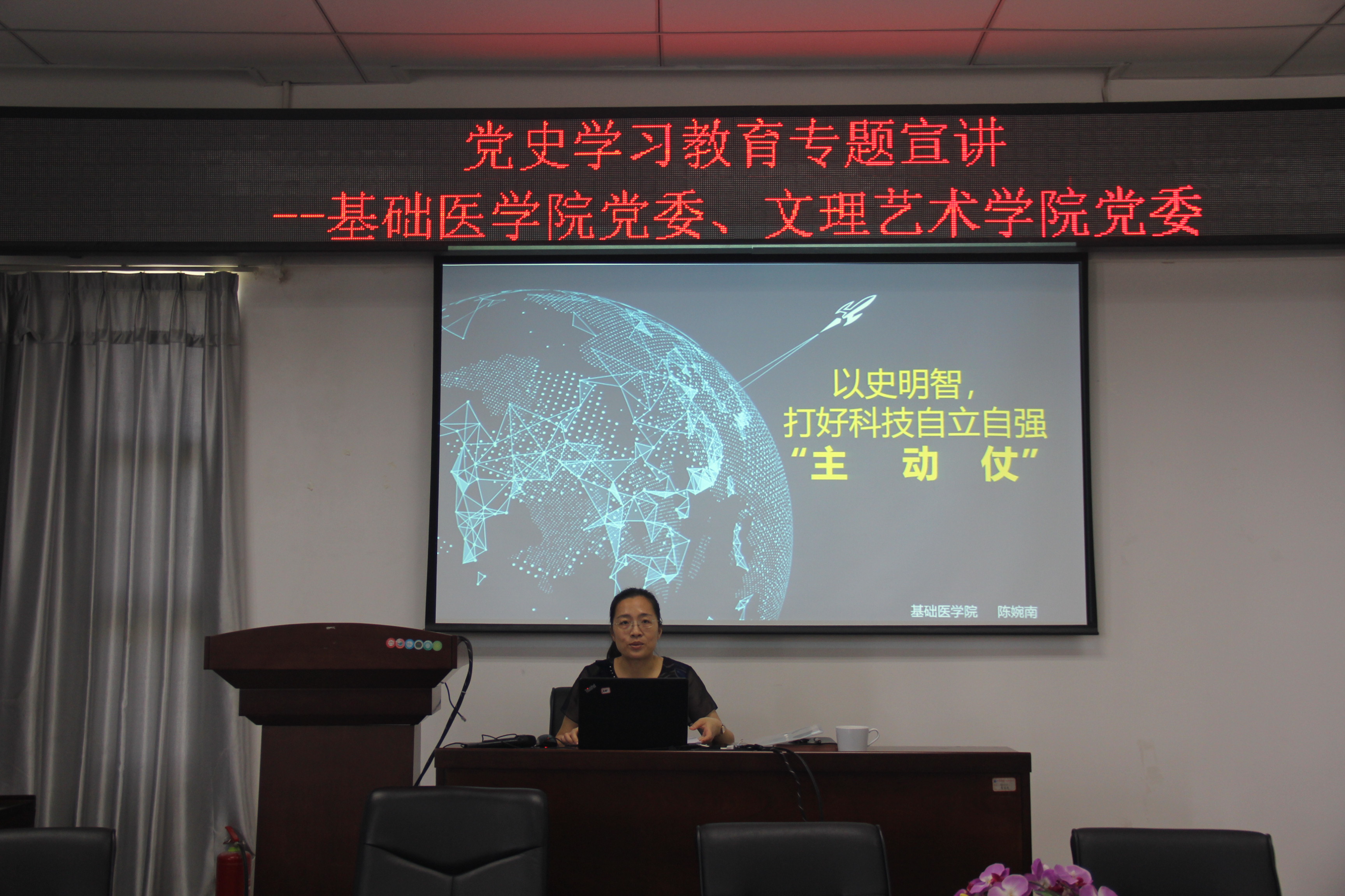 5月26日上午,羞羞漫画 、文理艺术学院联合开展党史学习教育专题宣讲,羞羞漫画 、文理艺术学院师生代表60余人听取了讲座。