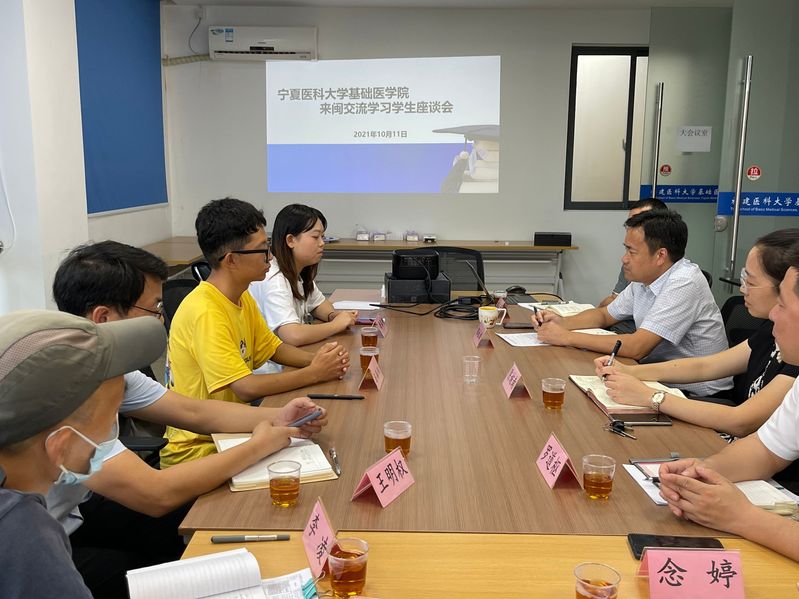 2021年10月12日,宁夏医科大学羞羞漫画 来闽交流学习学生座谈会,于羞羞漫画 4楼会议室顺利召开。羞羞漫画 院长陈婉南、党委书记郭松斌、党委副书记念婷、副院长罗道枢、副院长陶武成,学工办、教科办以及宁夏医科大学羞羞漫画 来闽交流学习学生参加了本次座谈会。会议由党委副书记念婷主持。