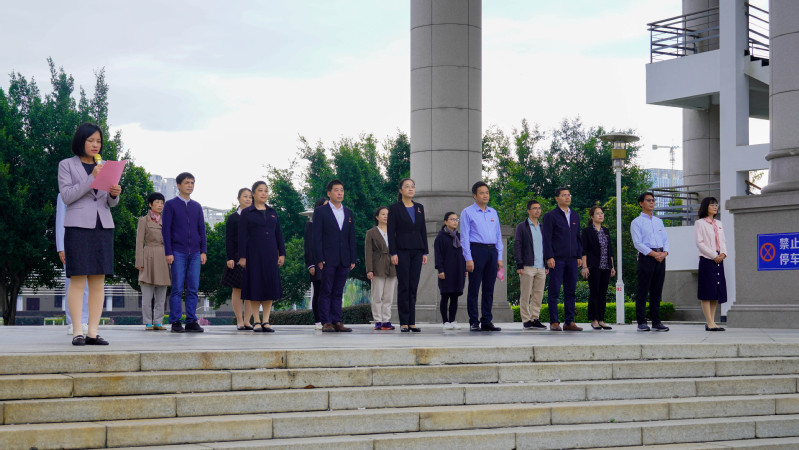 随着升旗仪式接近尾声,全场师生舞动起手中的小红旗,与高高飘扬在校园上空的国旗遥相呼应,整场升旗仪式在浓浓的爱国氛围中被推向了最高潮。