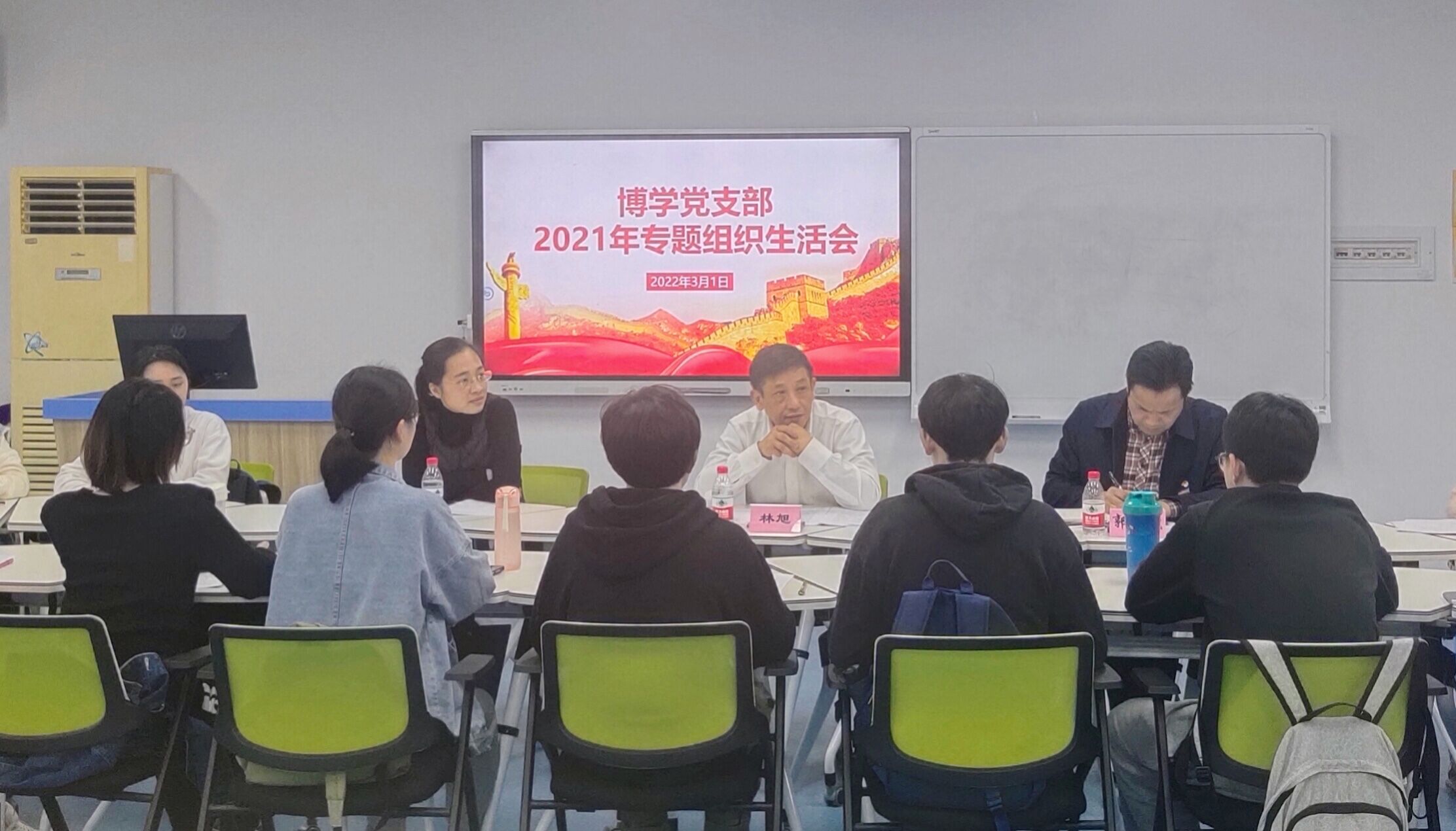 2022年3月1日下午,校长林旭出席指导所联系的羞羞漫画 博学党支部2021年度专题组织生活会。