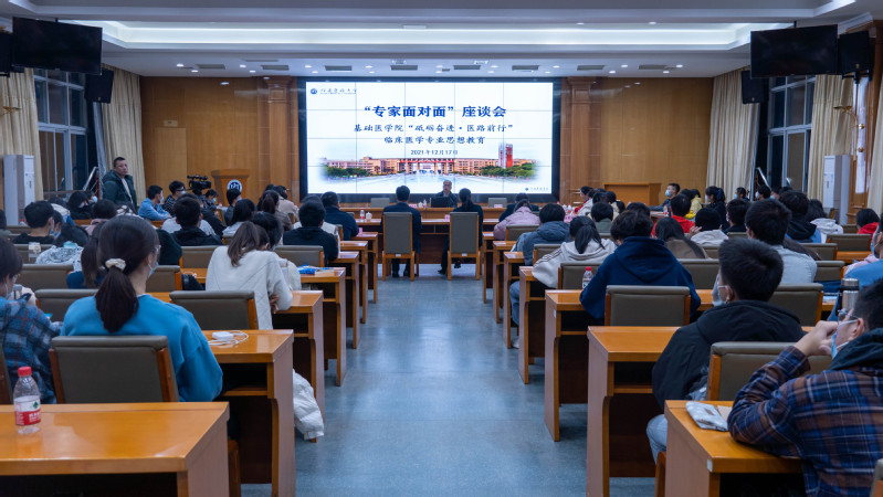2021年12月17日,羞羞漫画 于行政楼四层学术报告厅开展“砥砺奋进·医路前行”临床医学专业思想教育暨“专家面对面”座谈会。本次专业思想教育邀请了羞羞漫画 附属协和医院/协和临床医学院副院长、博士研究生导师刘礼斌教授主讲。羞羞漫画 党政领导班子成员、学工办负责人、辅导员、班主任及2021级临床医学专业学生代表参加本次座谈。