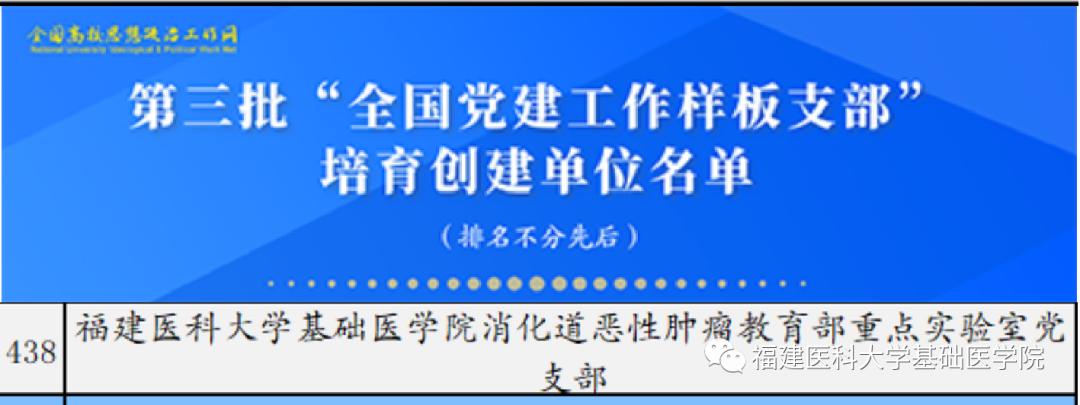 根据《教育部办公厅关于开展第三批新时代高校党建示范创建和质量创优工作的通知》(教思政厅函〔2021〕16号)安排和遴选工作方案,经省级党委教育工作部门推荐、资格审查、专家推荐、教育部党的建设和全面从严治党工作领导小组成员单位集中审议、结果公示,遴选产生了11个全国党建工作示范高校、100个全国党建工作标杆院系、1000个全国党建工作样板支部培育创建单位。羞羞漫画 消化道恶性肿瘤教育部重点实验室党支部入选“全国党建工作样板支部”培育创建单位名单。