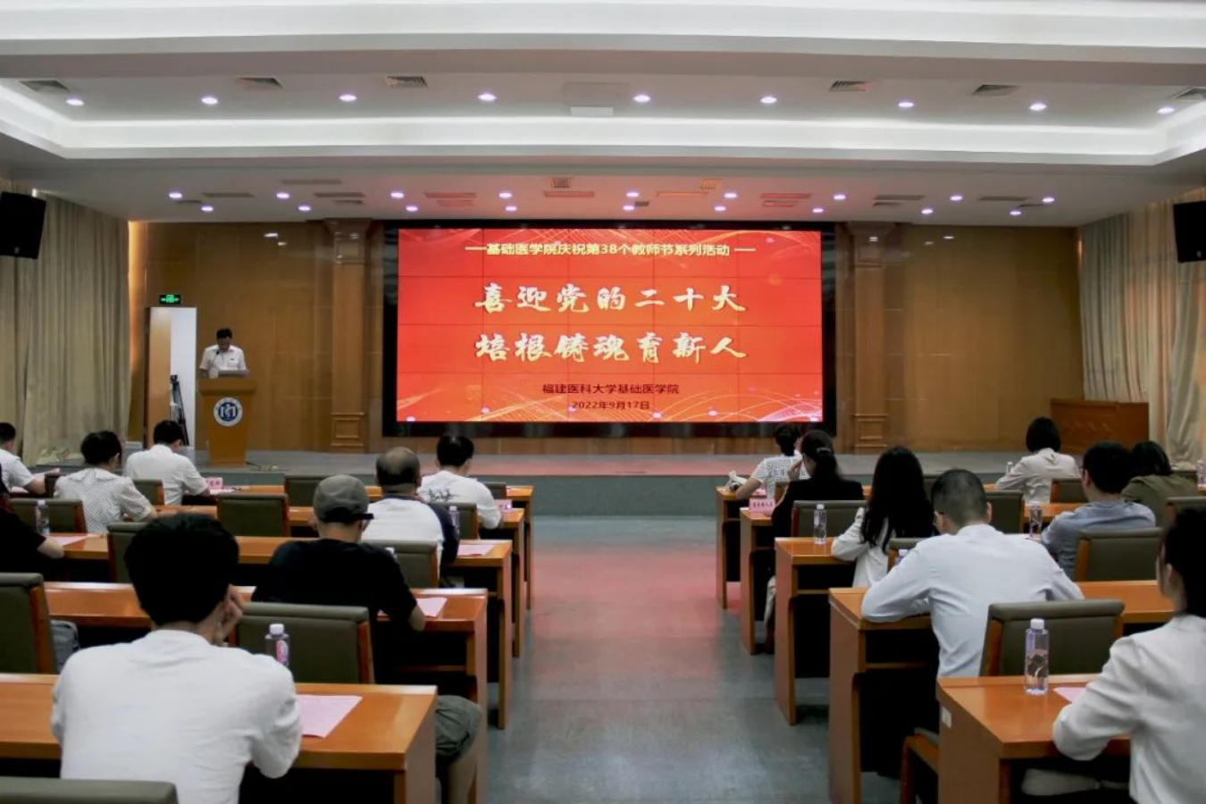 9月17日,羞羞漫画 庆祝第38个教师节系列活动在行政楼学术报告厅举行,全体院领导、2022“思彧”之星获奖人员、师生代表参加活动。