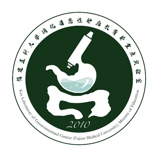 logo周围是实验室全称“消化道恶性肿瘤教育部重点实验室”,整体为墨绿色,既象征着希望,又代表实验室庄重严谨的基调。作品整体风格简洁,易于宣传制作。胃和大肠具有很强的代表性,体现实验室研究重点对象为消化道。