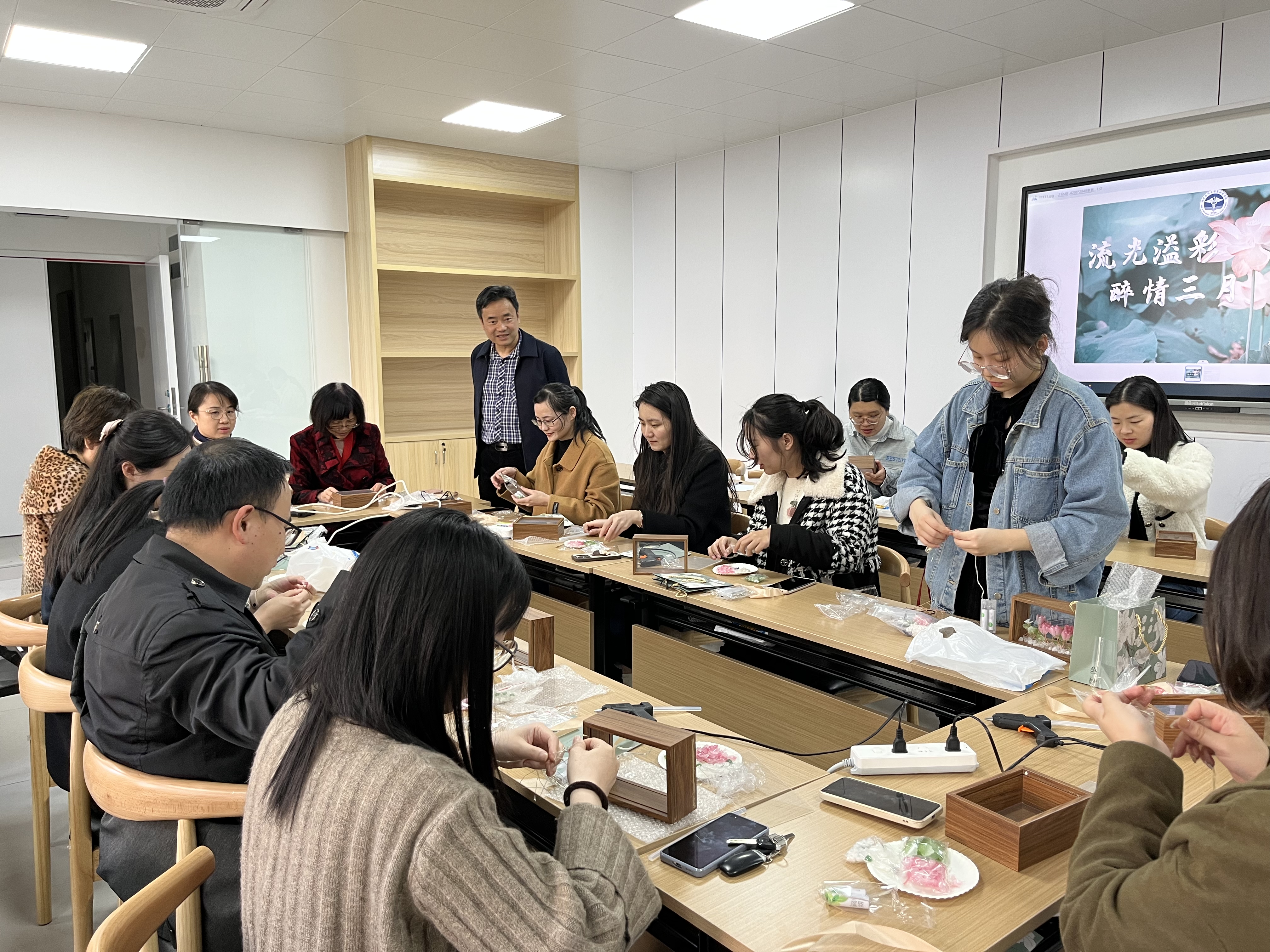 庆祝2023年三八国际妇女节,羞羞漫画 工会于2023年3月7日下午在上街校区3号楼智慧教室307开展“流光溢彩,醉情三月”手工制作活动,学院60余名教师员工参加了此次活动。活动现场,大家手工制作精美的莲花灯,活动氛围轻松和谐,充分展现学院师生员工健康向上的精神面貌。