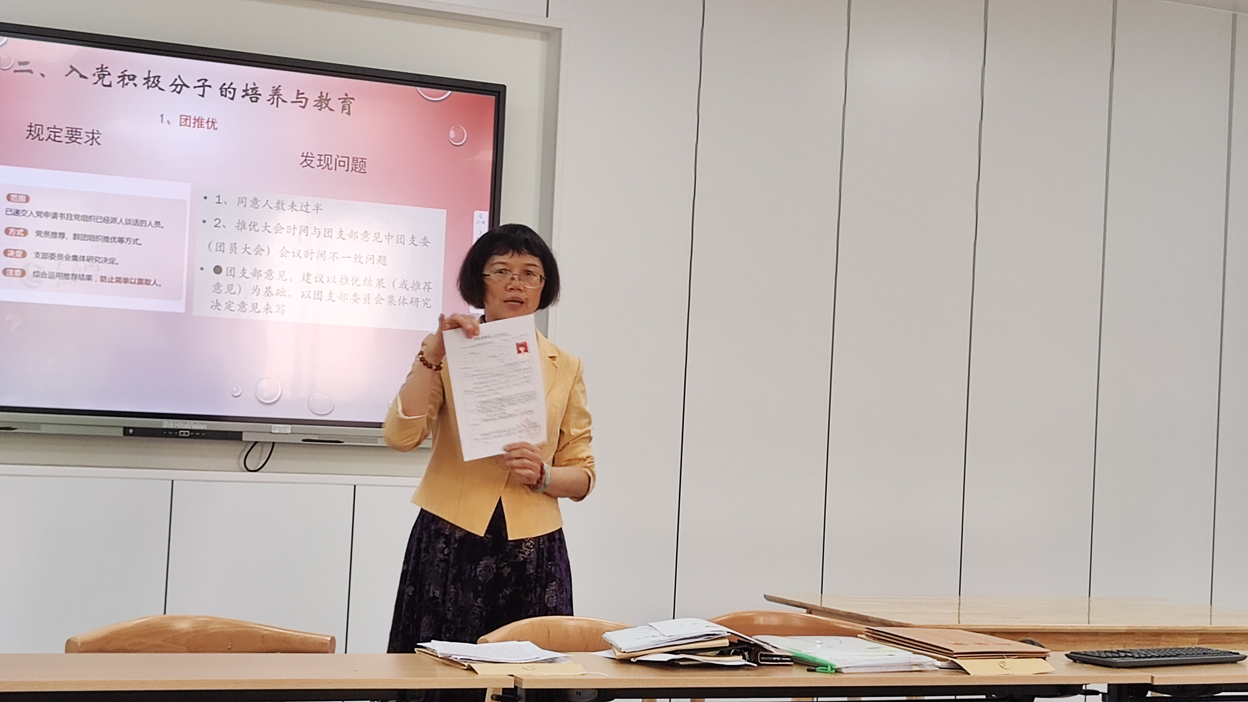 讲座伊始,高明书记从《普通高等学校辅导员队伍建设规定》中辅导员九大职责之“党团和班级建设”引入主题,向大家强调了做好学生党建工作的重要意义,并根据《中国共产党发展党员工作细则》等党建工作指导性文件,从申请入党、入党积极分子的培养与教育、发展对象的确定和考察、党员纳新、党员转正等规定工作步骤为大家详细做了具体要求阐释和存在问题分析,并现场随机抽取了多份学生党员材料,指引辅导员们共同发现问题、探讨问题、解决问题,并针对大家的困惑及时释疑解惑,当场给予有力的指导意见,进一步助推学院学生党建工作的规范性。