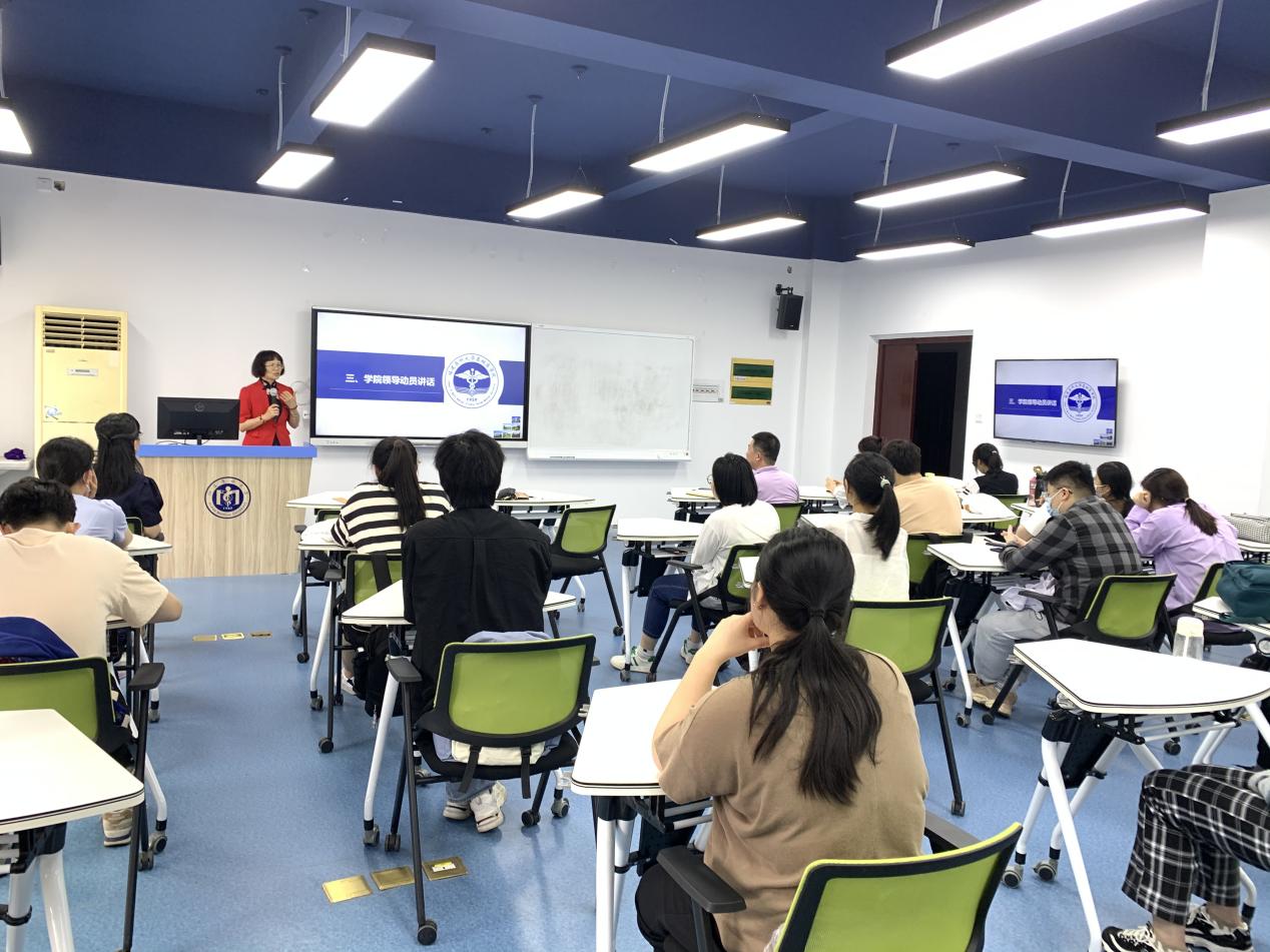 高明副书记出席动员会,叮嘱同学们珍惜临床实习的学习机会,并分享六个字,一是遵和守,要遵守实习纪律、坚守岗位;二是钻和挤,要多学多问,多挤时间钻研;三是防和化,要在老师指导下进行各项操作,防患诈骗,化解院内宗教传播等潜在风险。