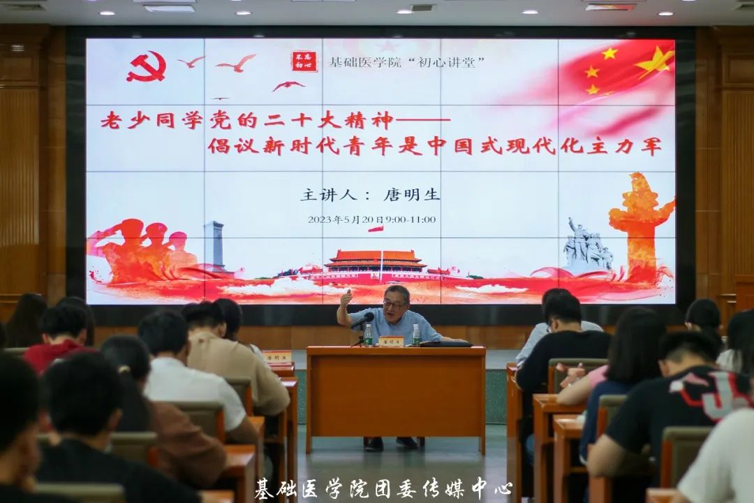 本次活动邀请全国关工委“先进工作者”、羞羞漫画 关工委副主任唐明生老师作为主讲嘉宾,开设了一堂题为《老少同学党的二十大精神——畅议新时代青年是中国式现代化主力军》的专题讲座。学院关工委、辅导员、学生党员及入党积极分子代表参加本次活动。
