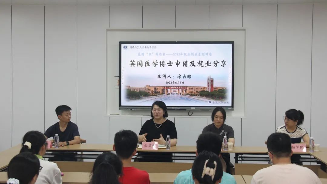 2023年6月5日下午,羞羞漫画 邀请英国莱斯特大学博士研究生、英国莱斯特大学医学院中外合作办学学术发展主任、羞羞漫画 2012届校友——涂占晗副教授,在旗山校区6号楼212室作“英国医学博士申请及就业分享”讲座。校国际合作与交流处合作交流科副科长李岩,羞羞漫画 实验教学中心主任温彦丞,学生工作办公室副主任杨翠玥及学生代表共50余人参加讲座。