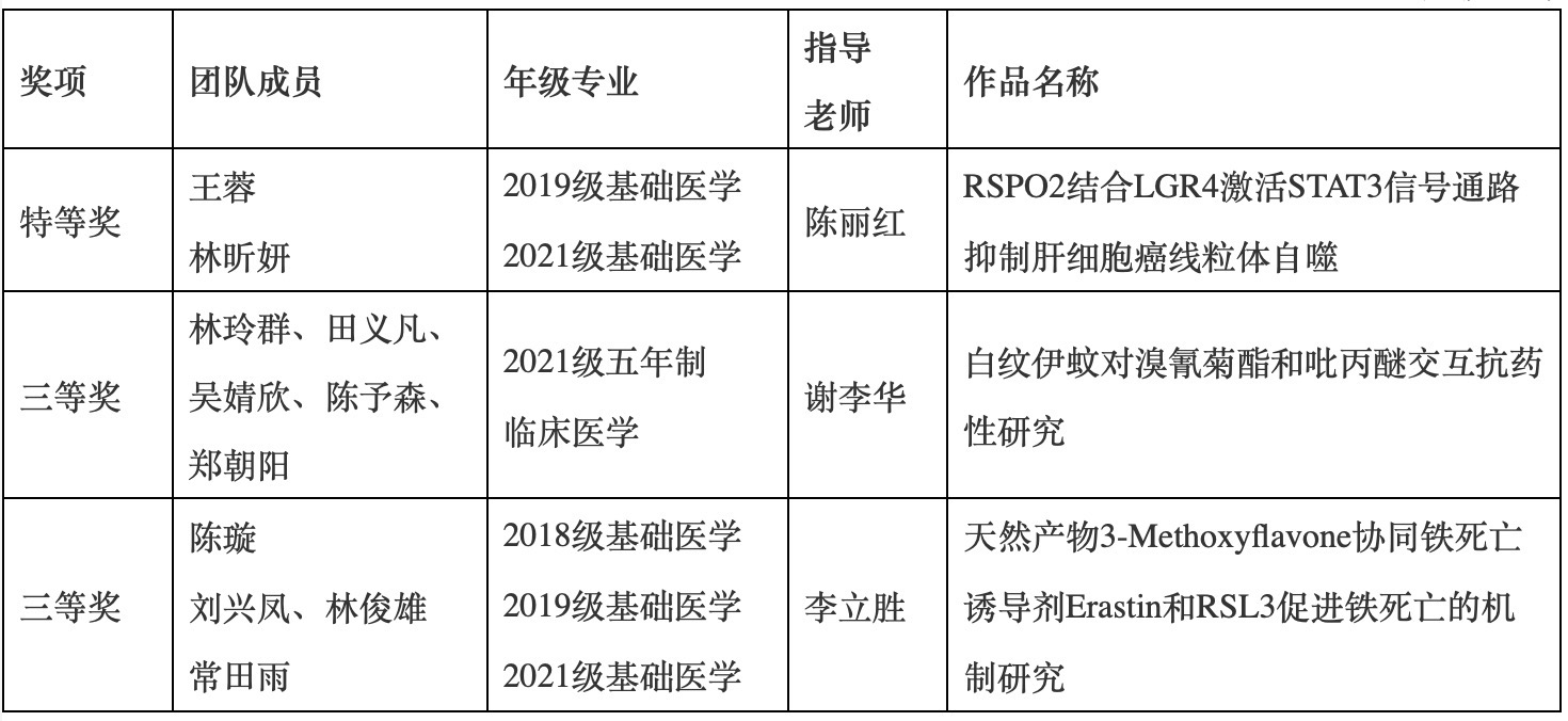 2023年7月21日至22日,第八届全国大学生生命科学竞赛福建赛区决赛(科学探究类)在闽南师范大学举办,共21所高校290支队伍参赛。我校三支参赛队伍荣获省赛特等奖1项、三等奖2项(获奖名单见下),其中获特等奖的作品将代表学校入围全国赛。