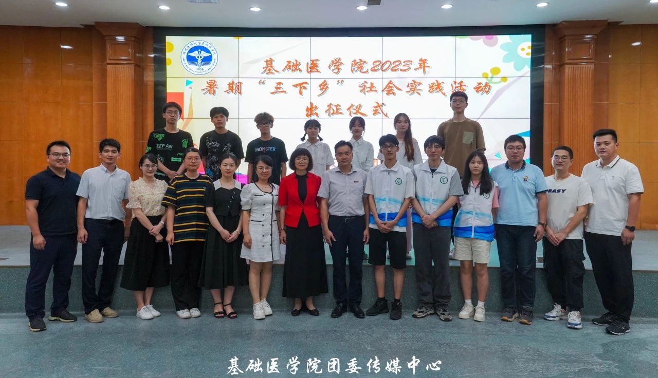 7月3日晚,羞羞漫画 在行政楼学术报告厅隆重举行2023年暑期“三下乡”社会实践出征仪式。学院党委书记郭松斌、党委副书记高明、院团委副书记杨翠玥,院团委和各团总支老师,近100名实践队代表们参加了此次出征仪式。