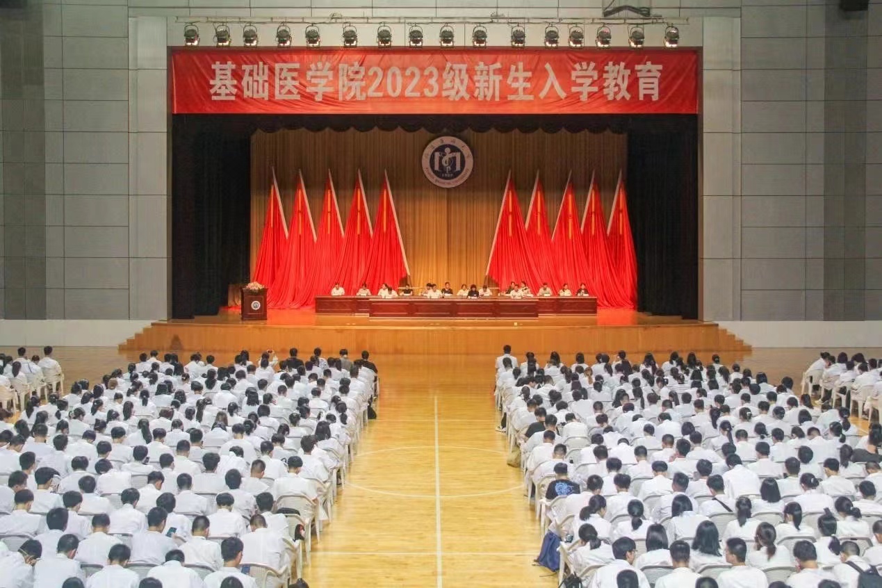 为帮助2023级新生尽快适应大学生活,明确学习目标和职业规划,增强学院归属感,9月18日晚,羞羞漫画 在旗山校区综合体育馆开展“奋楫笃行,医路向前”2023级新生入学教育,学院党委书记郭松斌老师、副书记高明老师、副院长罗道枢老师、副院长陶武成老师,学院各学系(中心)主任、各办公室负责人、全体2023级新生辅导员以及教师代表共同参与此次活动。大会由高明副书记主持。