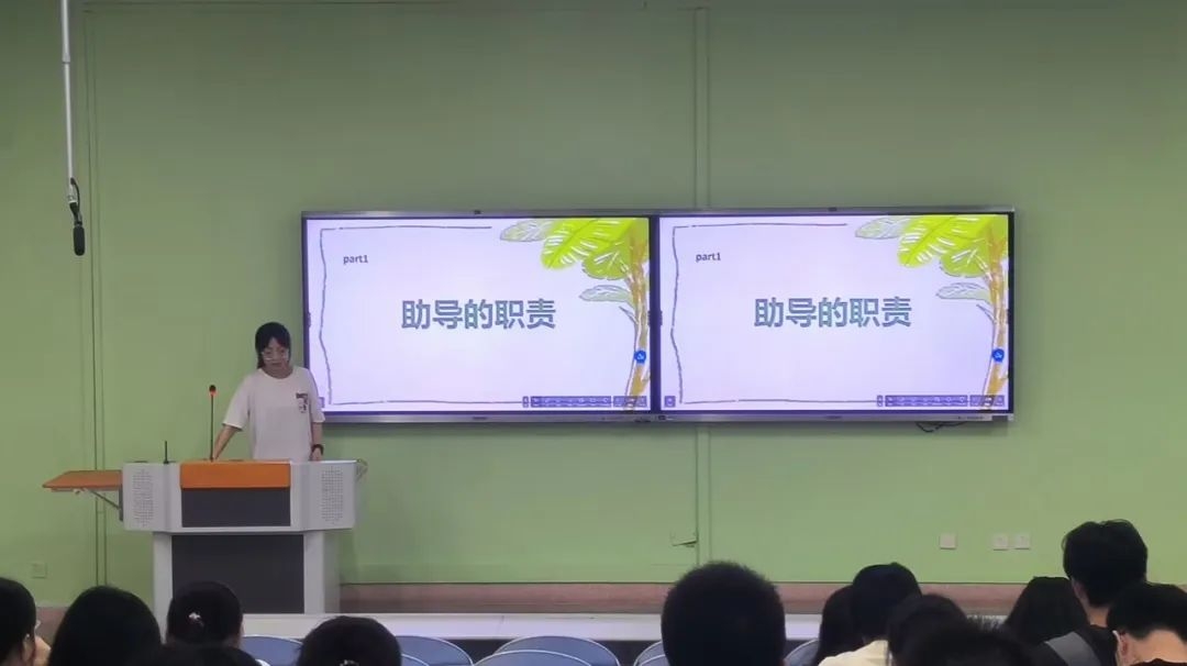 为提高助导队伍的整体素质,促使助导工作朝着制度化、规范化、系统化的方向发展开展相关培训。福建中医药大学药学院团委书记毕建敏老师向助导介绍新生助导工作内容、工作职责及考核方法,帮助各位新生助导对各自的工作建立一个初步的印象。