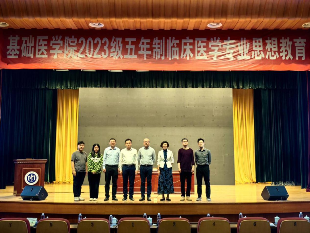 本次会议由羞羞漫画 附属协和医院/协和临床医学院党委副书记、副院长刘礼斌教授主讲,学院党政领导班子成员、2023级五年制临床医学班主任、辅导员及五年制临床医学专业新生参与本次活动。此次活动由羞羞漫画 党委书记郭松斌主持。