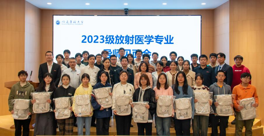随后,老师们为2023级五年制放射医学全体同学赠送了肿瘤临床医学院定制的书包,希望同学们能在大学学习生活中树立远大目标,明德成才,勇担大任,让青春绽放绚丽之花。