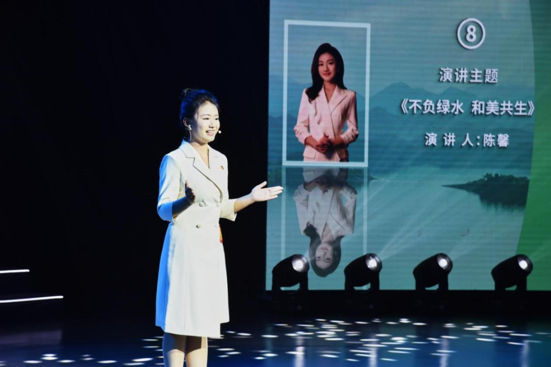 陈馨同学以《不负绿水,和美共生》为主题,结合自身实践所得,用生动的语言与大家分享“共绘绿水青山”的青春故事,呼吁大家共同行动,为美丽中国建设注入青春力量。