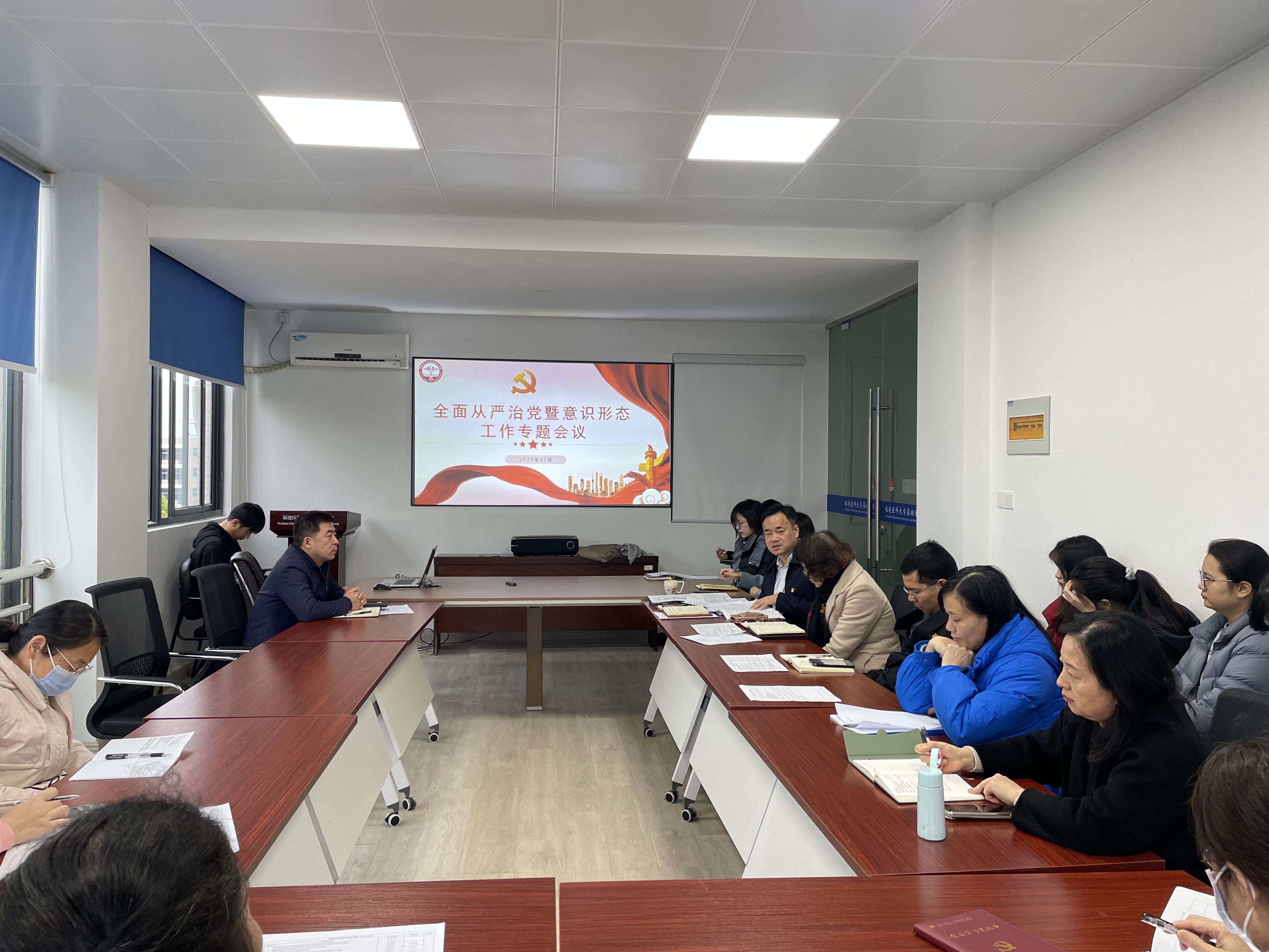 1220日,基础医学院召开全面从严治党暨意识形态专题工作会议,学院班子成员、各系部中心主任、党支部书记参加了会议会议由院党委书记郭松斌主持。