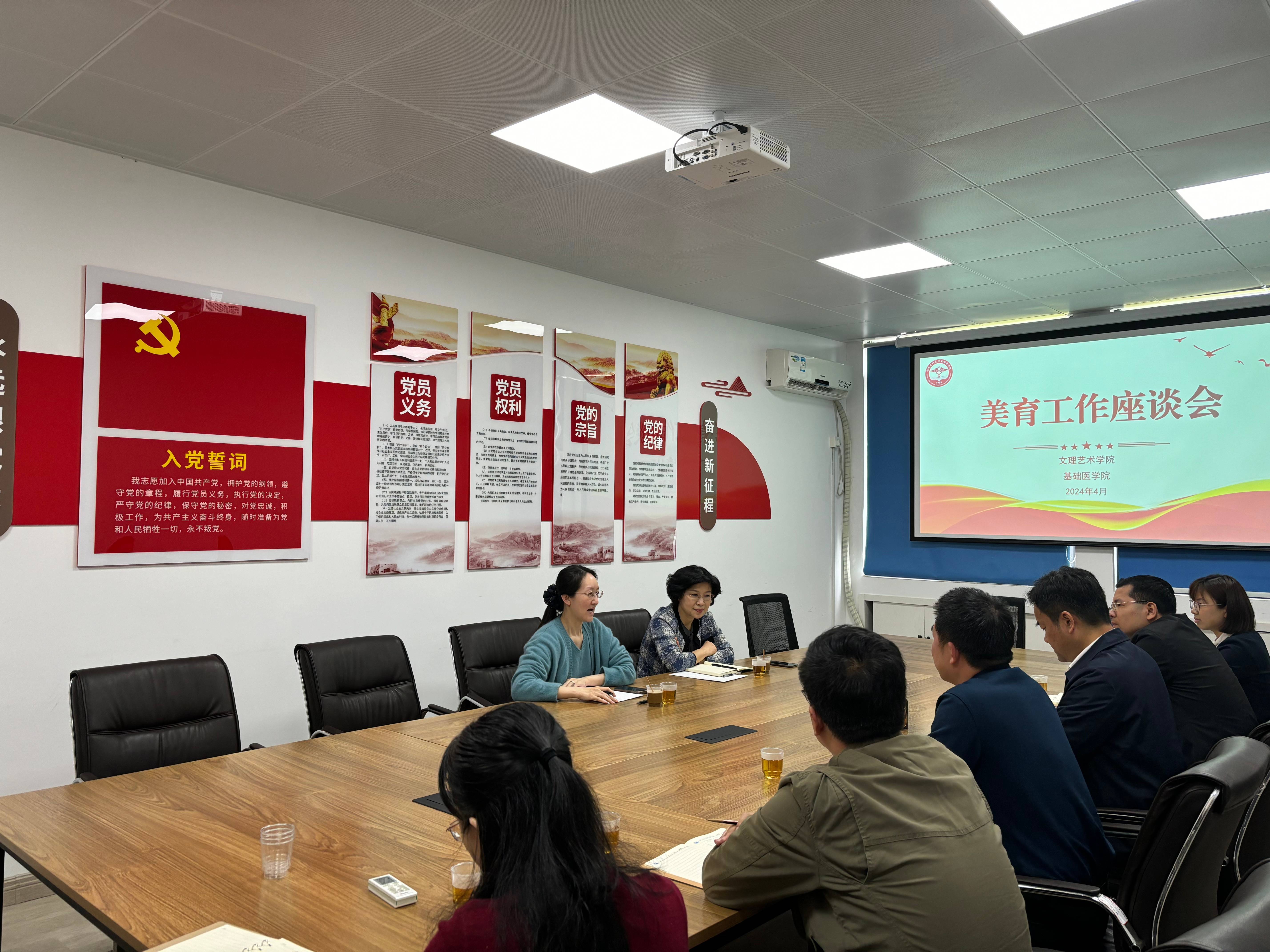 为贯彻落实习近平总书记关于教育的重要论述精神,进一步强化美育育人功能,改进提升学院美育工作,4月8日,文理艺术学院党委书记卢征、院长冯欣到羞羞漫画 开展美育工作交流座谈,学院领导班子成员、各办公室负责人参加了会议。会上,双方就美育课程建设、环境文化建设以及美育实践活动等问题展开了积极讨论并提出了意见和建议。双方就加强美育教育合作、创新美育实践活动形式、推动美育与专业教育融合等工作达成了共识。这次座谈会为学院美育工作带来了新思路,拓宽了新视野,提供了新路径,对学院加强美育工作具有重要意义。