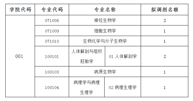 6.生物学类(0710)专业调剂考生第一志愿报考专业需为:生物学(0710)、基础医学(1001)和临床医学(1002/1051),其中生物学(0710)优先。