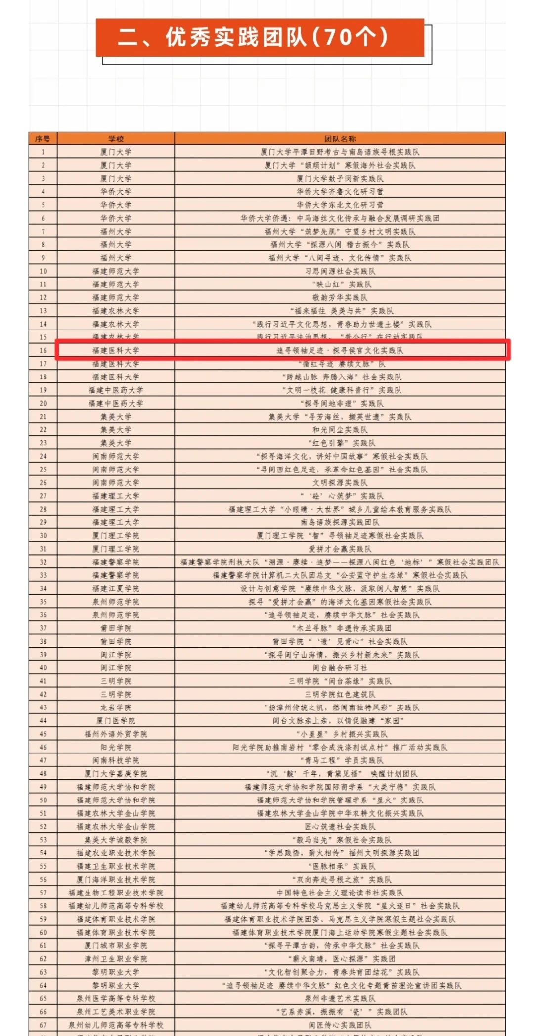 日前,中共福建省委教育工委公布了关于“追寻领袖足迹 赓续中华文脉”2023—2024学年全省大学生寒假主题社会实践活动的评选结果。我校获评优秀组织单位,羞羞漫画 追寻领袖足迹·探寻侯官文化实践队获评优秀实践团队,连喆恬、赵洁获评优秀实践个人。