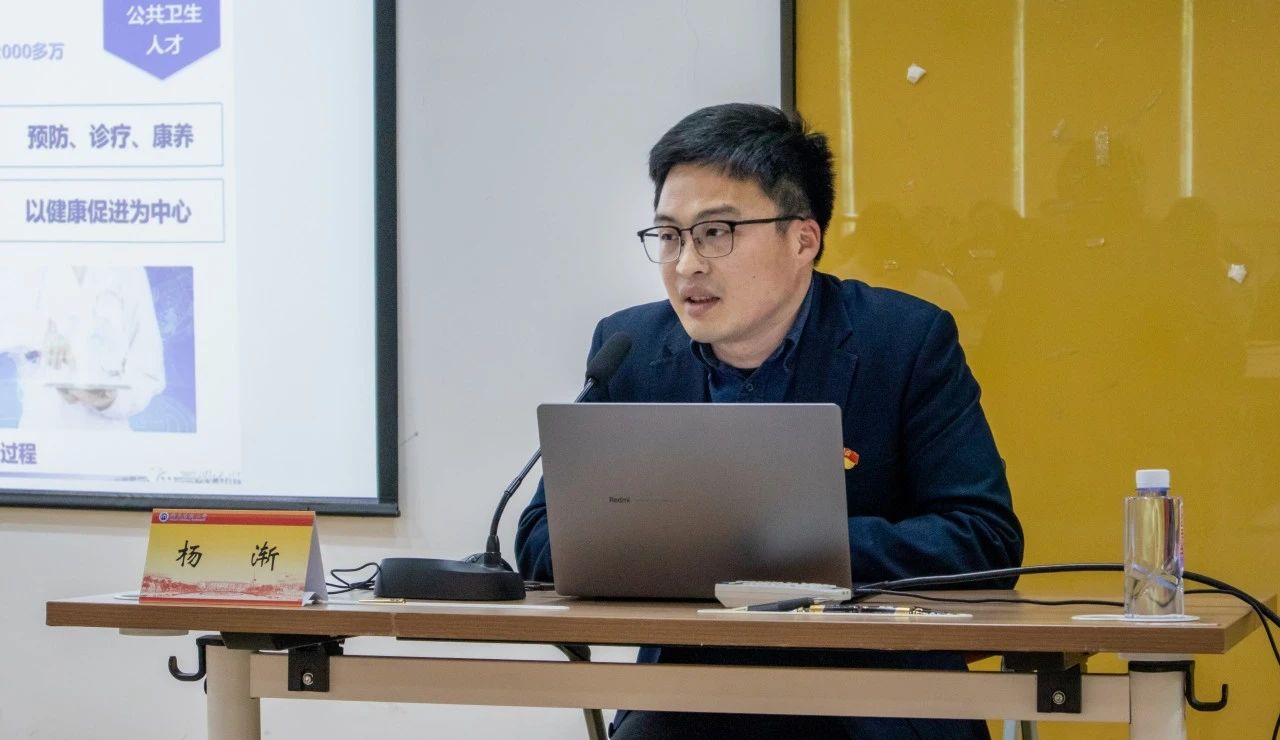 杨渐老师以临床医学专业“学长”身份,结合求学、实习和工作经验,围绕“临床医学类本科生学业规划的交流研讨”为主题展开讲座。他指出临床医学类本科专业人才的核心素养包括职业素养、知识技能、病人照护、沟通合作、终身学习等,具有知识宽、后劲足、科研强、素质高、国际化的特点。接着他列举我校临床医学类本科专业毕业生执医考试通过率情况,引导学生要夯实专业基础知识,加强执医考试理论科目的学习、复习,尽快通过执医考试。他认为临床医学类专业学生学业规划中有三个关键时间节点:一是从中学到大学的转变期,学生要培养发现问题、解决问题的能力,培养批判性、创造性思维和自主学习习惯;二是临床见实习时期,要善于抓住学习机会,勤做肯干,多与患者、家属交流,与同事、同学团结互助;三是实习、考研期,要学会“两只手弹钢琴”,让理论与实践相辅相成,牢固建立临床思维,促进医学生全面发展。最后,他强调,我校许多校友成为医药卫生战线领军人物和骨干力量,当代医学生更要赓续前辈力量,争做新时代的奋斗者、开拓者,为健康中国、健康福建贡献福医力量!