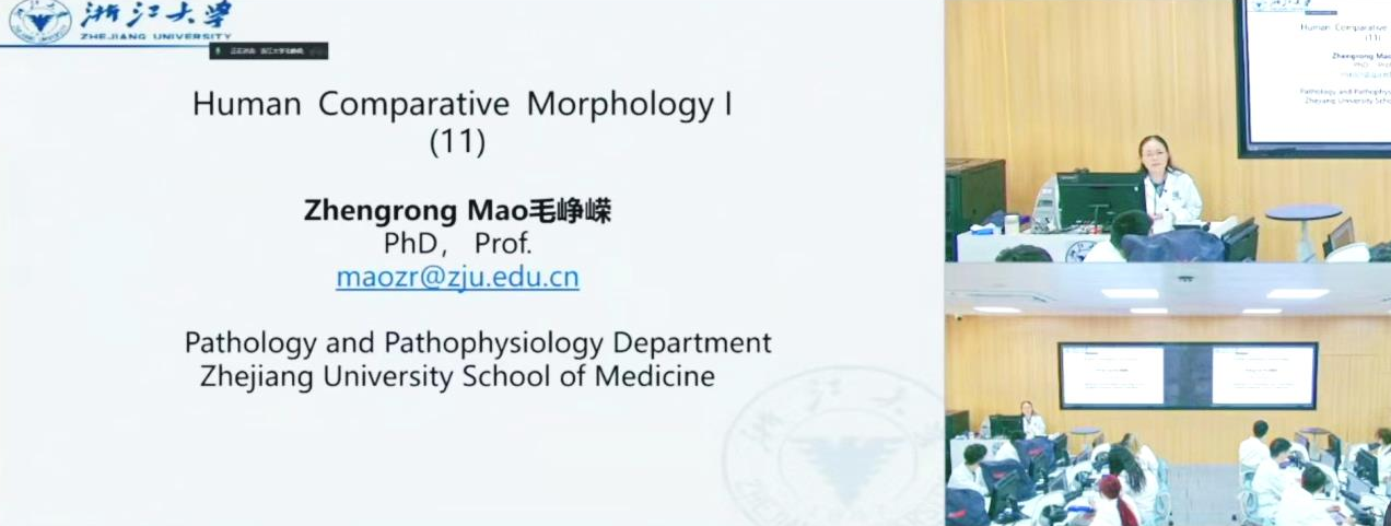活动伊始,由南京医科大学羞羞漫画 苏川院长主持了开幕式,介绍了与会嘉宾并宣布活动开始。南京医科大学冯锋校长和浙江大学医学院楼敏院长分别发表了致辞。本次课程由浙江大学病理学系毛峥嵘教授主讲,实验内容为“心血管系统疾病”,她采用翻转课堂的形式,带领同学们通过线上的虚拟仿真3D病理大体标本和病理虚拟切片进行实验教学。毛教授深入浅出的讲解和生动的案例让同学们对实验内容有了更加直观、深刻的理解。各校的同学们积极参与,争相发言,现场气氛热烈而有序。