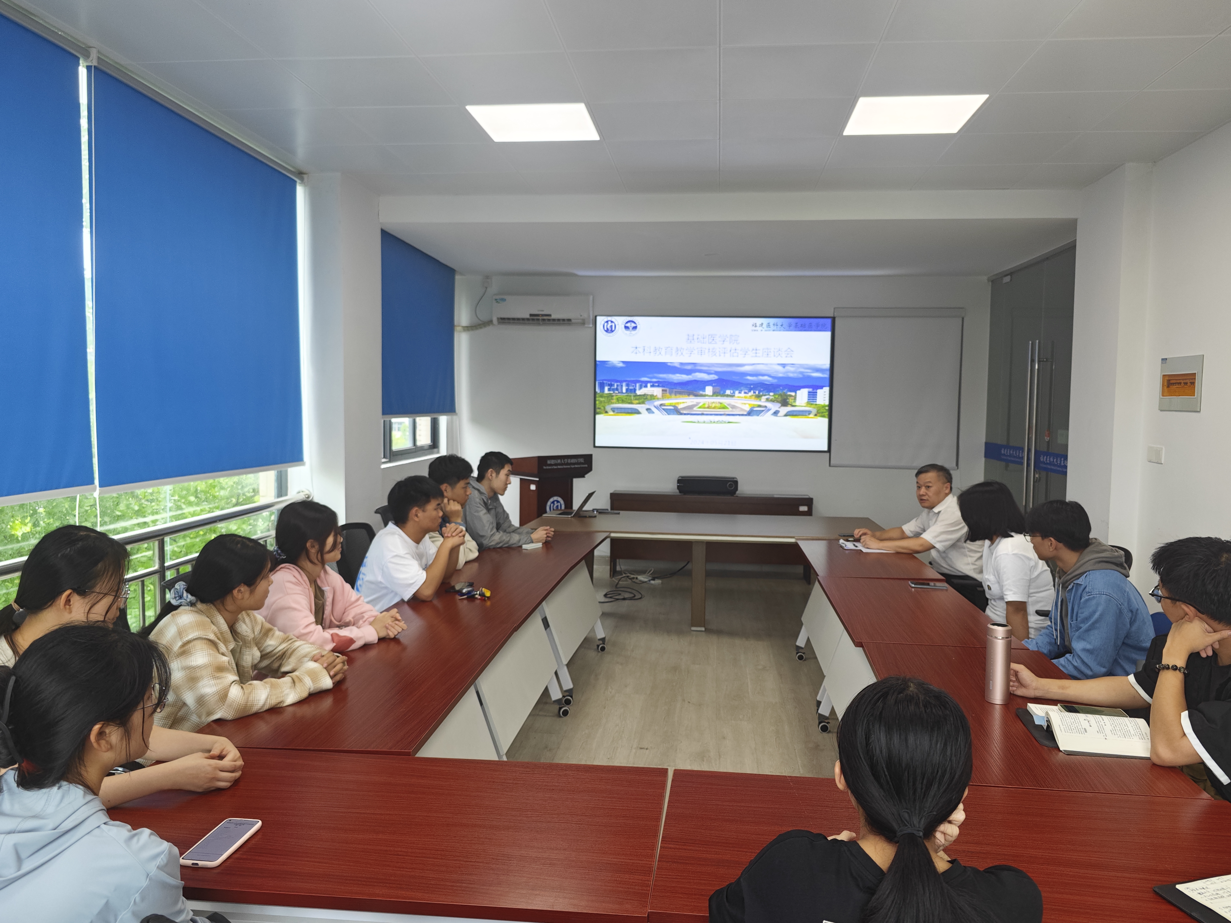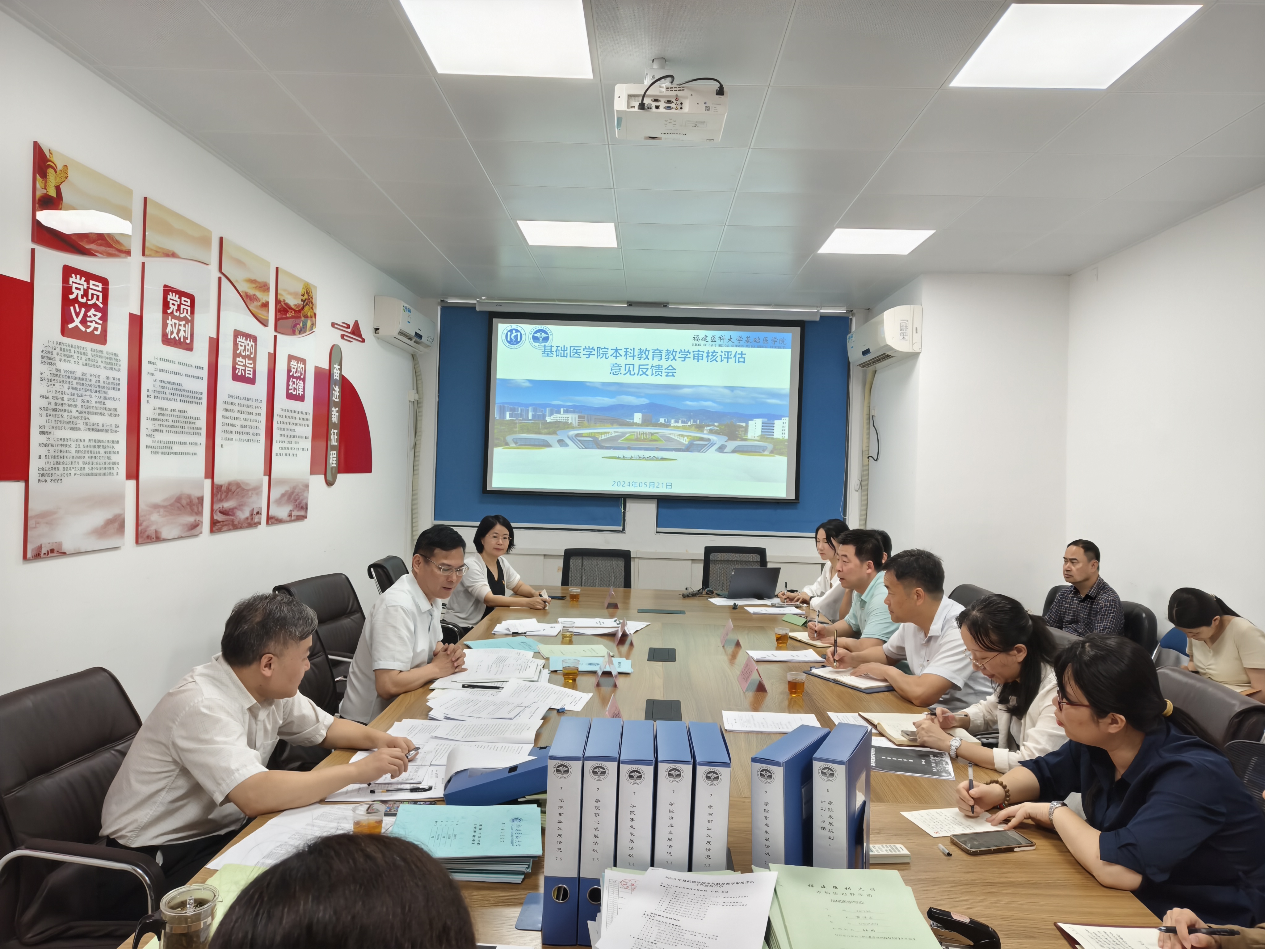 实地考评结束后,学院组织召开本科教育教学评估意见反馈会。教务处张丽芳副处长,学院郭松斌书记、秦雷副书记、罗道枢副院长、陶武成副院长,学院各办公室主任、各系部/中心负责人及教师代表参加会议。会上,专家组结合线上评估及实地考察情况,对羞羞漫画 本科教学工作的开展情况及国家级一流专业基础医学专业本科生学术型人才培养质量给予肯定,对学院审核评估准备工作及本科教学工作中存在的问题进行了反馈,指出学院在办学方向与本科地位、培养过程、教学资源与利用、教师队伍、学生发展、质量保障、教学成效等方面存在问题和不足。