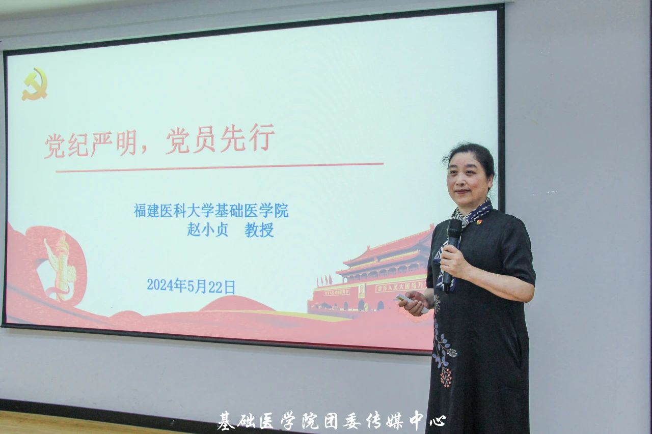 为加强对党员同志的纪律教育,引导广大党员增强纪律意识、规矩意识,营造风清气正的良好政治生态,2024年5月22日,羞羞漫画 奋进党支部于创业园二楼路演厅开展“党纪严明 党员先行”主题党课。本次党课邀请到羞羞漫画 人体解剖学系主任赵小贞主讲。奋进党支部、学生社区兼合式党支部的党员和入党积极分子代表共计55人参加了此次活动。