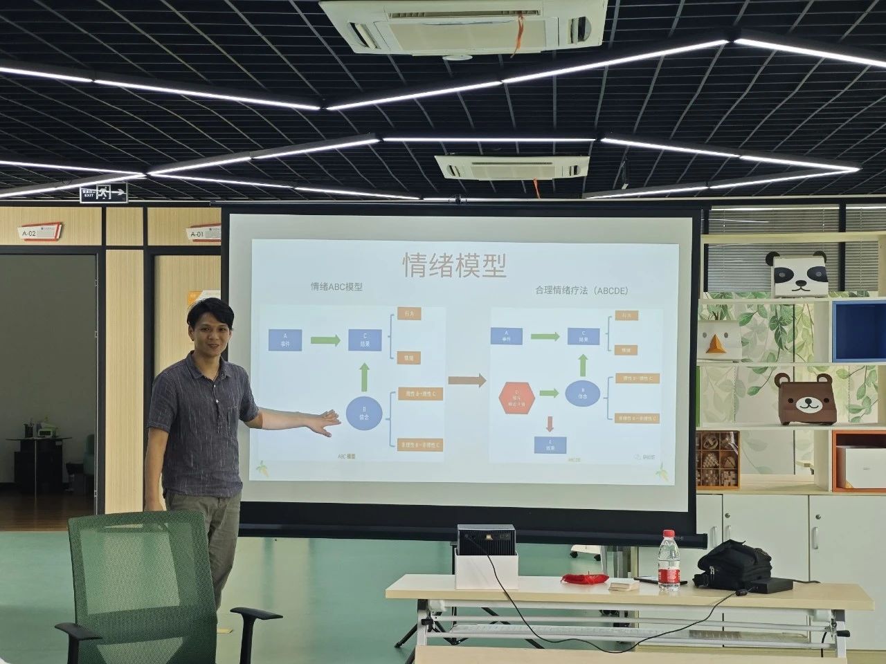 陈锦锋老师在向同学们介绍了“OH卡牌”及其功能后,带领每一位同学利用OH卡牌讲述一个自己的故事,老师依据同学们所讲述的故事进行分析,引领大家探索自己的内心。陈老师从情绪识别-态度和信念-行为联合-关联事件联合-找到情绪背后的期待-转念/驳斥六个步骤完成信念的识别与转变,进而达到情绪调节的效果。