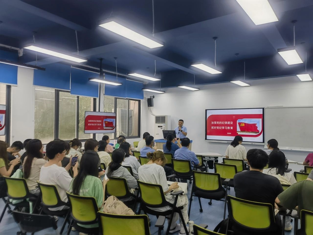 秦书记指出,加强党的纪律建设,抓好党纪学习教育是我们党的光荣传统和独特优势,我们要坚持两个“永远在路上”的经常性重要性的工作,坚持全面依法治国和依规治党相统一,深刻把握大党独有难题的破解之道。接着,秦书记分析了新修订的《中国共产党纪律处分条例》(以下简称《条例》)呈现出的三个特点,并结合具体实例带大家重温了党的六大纪律。他强调,要通过学习贯彻《条例》、深化党组织领导责任、创新党纪学习教育载体、坚持党风党纪一起抓等四个路径开展好党纪学习教育。