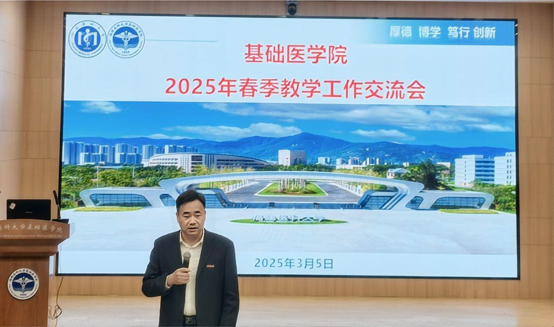 郭松斌书记在总结发言中强调,2025年是“十四五”规划收官之年、“十五五”规划开局之年,全院教师要谨记纪律意识、危机意识、创新意识和担当意识,主动迎接人工智能赋能高校教学新生态挑战,继续做好学院各项教育教学工作,推进基础医学拔尖人才自主培养,为学院各项工作再上新台阶努力奋斗。