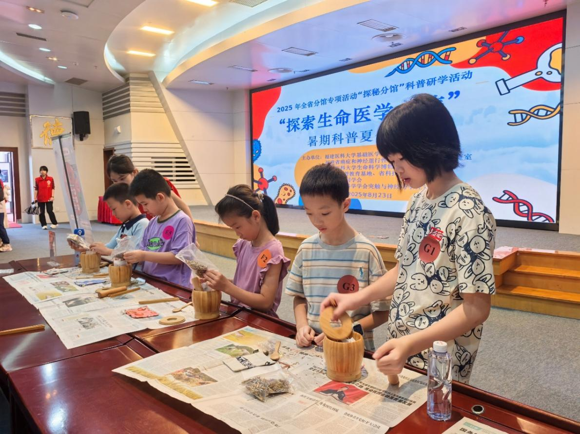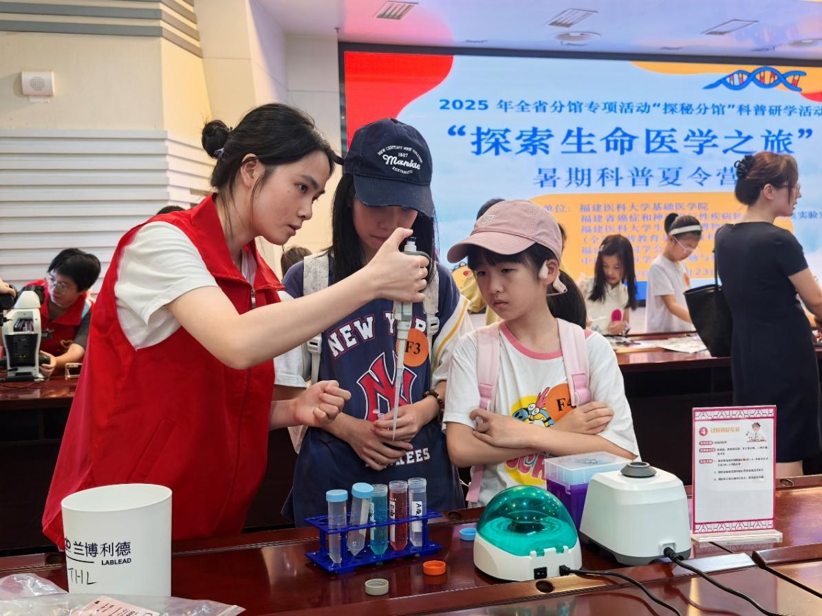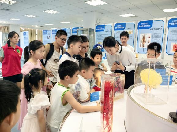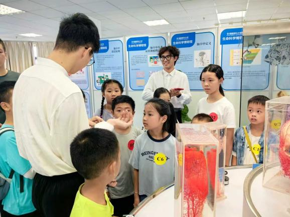 2025年8月23日,羞羞漫画 旗山校区迎来了一批可爱的“探险小队员”——由羞羞漫画 联合福建欧美同学会及神经科学学会突触与神经可塑性分会等多家单位主办的“探索生命医学之旅”暑期科普夏令营,吸引了校内外家长、福建省欧美同学会成员等上百组中小学生家庭热情加入。夏令营在教育部医药基础研究创新中心和全国科普教育基地开展,包含生命医学科普课堂、实践互动课堂和探秘实验室等三大环节,共有上午和下午两个场次,以一个个兼具趣味性与科学性的游戏和实验,带领小朋友们开启和体验了一段充满神秘与惊喜的生命医学探索之旅。