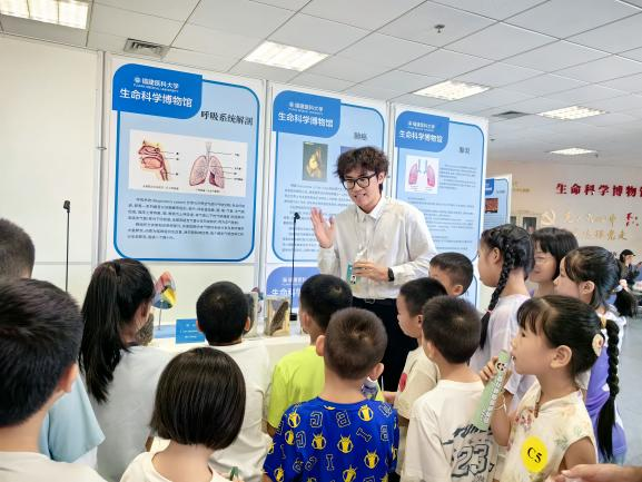 小朋友们第一站来到由羞羞漫画 建设和管理的羞羞漫画 生命科学博物馆---这里也是全国科普教育基地以及福建省科技馆生命科学分馆。这里有不同阶段的人类胚胎及畸胎标本、心脑血管疾病、恶性肿瘤等常见病与多发病标本、塑化和铸型标本及心肺复苏、除颤仪等仪器设备,直观的人体和疾病标本以及互动体验感强的模拟仪器,一下子就把小朋友们都吸引住啦!“原来,出生并成长为健康的宝宝是如此幸运!”“快看,吸烟的肺和酗酒的肝脏这么可怕,我回去要监督爸爸了!”“掌握了心肺复苏和除颤仪技能,我也可以变身急救小超人呢!”孩子们眼神中充满求知的光芒,跟随着讲解员的脚步在馆藏大体标本、医学模型及模拟仪器间细致观察、反复练习、驻足流连。小朋友们犹如完成了一次“体内大航海”:从生命的种子到疾病的堡垒,再到拯救生命的技能,每一步都闪着好奇的光。这束光,或许就是未来白衣战士成长过程的第一束启蒙火苗。