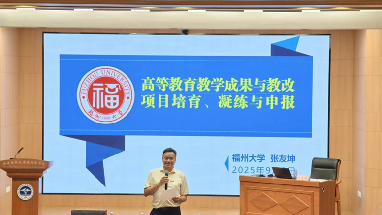 本次讲座特邀福州大学发展规划与学科建设处副处长、教务处原副处长张友坤做“高等教育教学成果与教改项目的培育、凝练与申报”为主题的专题讲座。张友坤副处长凭借其在高等教育领域多年的丰富经验和对教学成果、教改项目申报工作的深入研究,系统梳理了当前高等教育教学成果与教改项目的发展趋势和政策导向,结合最新的申报要求,详细解读了项目申报的重点、难点以及注意事项,并结合教学成果申报具体案例展示、教学成果的内涵与特征、教学成果的培育与锻造、教学成果的撰写与申报等四个维度,指导申报书撰写、材料规范组织、成果亮点挖掘等方面进行了深入剖析。在教学成果培育与凝练环节,张友坤副处长介绍了如何立足日常教学实践,聚焦教学改革中的关键问题,注重成果的创新性、实用性和可推广性,通过持续积累和系统梳理,以形成具有特色的教学成果,为在场的教师们提供了清晰的思路和极具价值的指导。