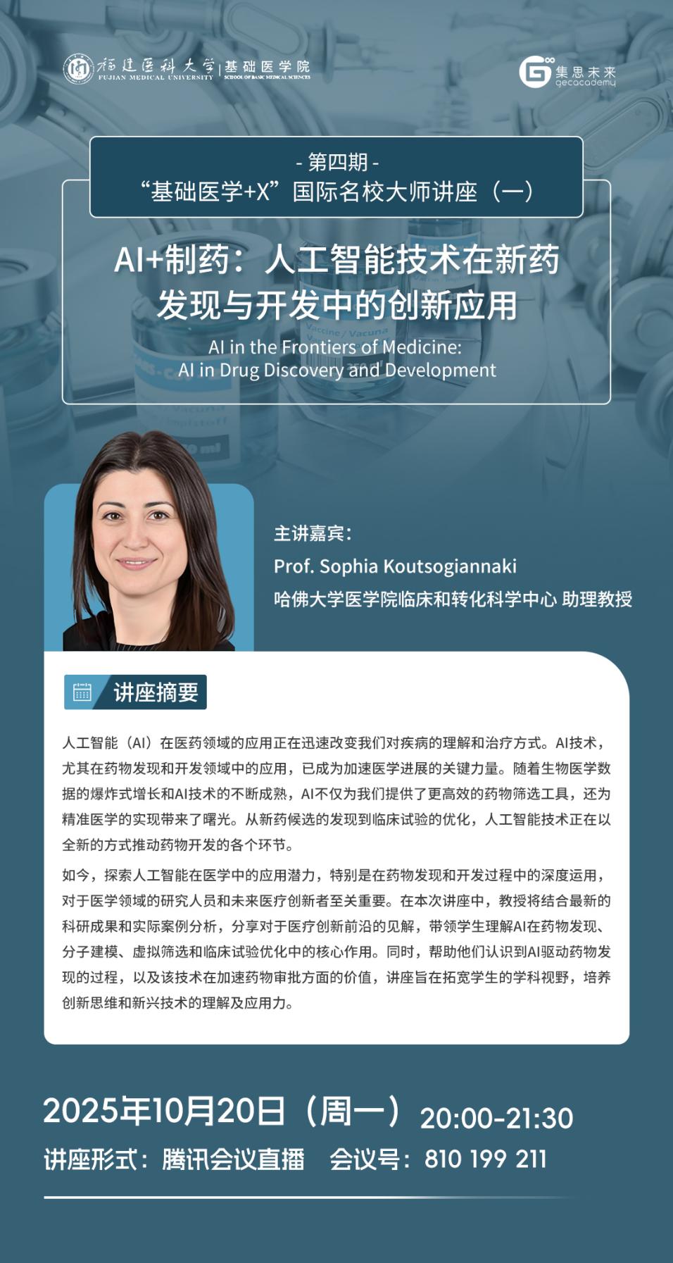 在学习通上加入《“基础医学+X”名校大师系列讲座》视为系列讲座(一)报名成功,系列讲座(一)课程(10月20日)邀请码:18789631。由于名额有限,请报名的同学务必按时参与讲座;若无故未能参与,将被视为放弃学习资格并从班级中移除,取消后续参与资格。