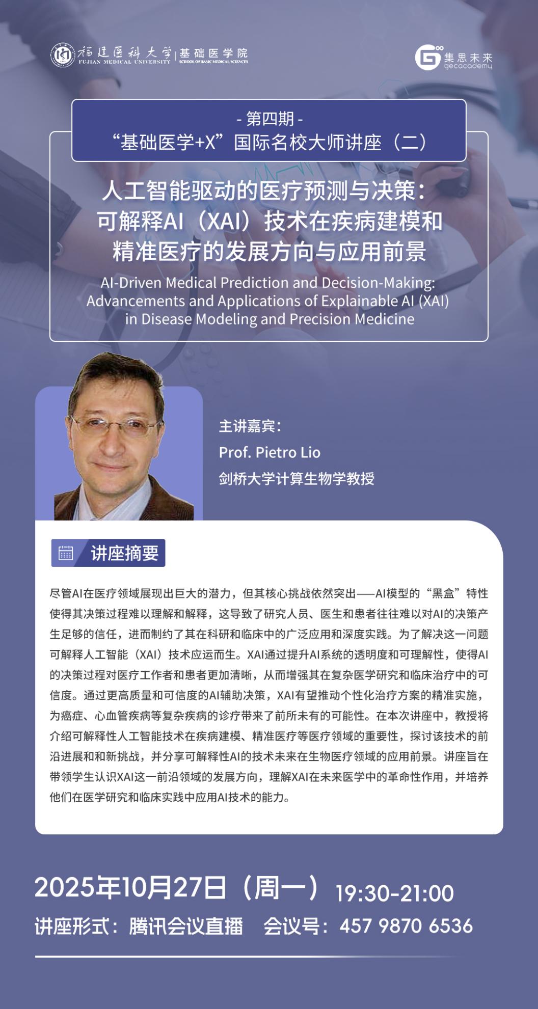 为促进学生了解以人工智能、大数据为代表的新一轮科技革命和产业变革下锚定基础医学疾病诊疗与研究的前沿研究方向与方法,探索医学与其他学科的交叉应用,培养国际化视野,探讨国际研究趋势和动态。羞羞漫画 联合天津集思教育集团继续开展第四期“基础医学+X”国际名校大师讲座,主讲嘉宾为来自全球一流高等学府和研究机构的9位知名教授。现将该系列讲座(二)相关信息发布见下: