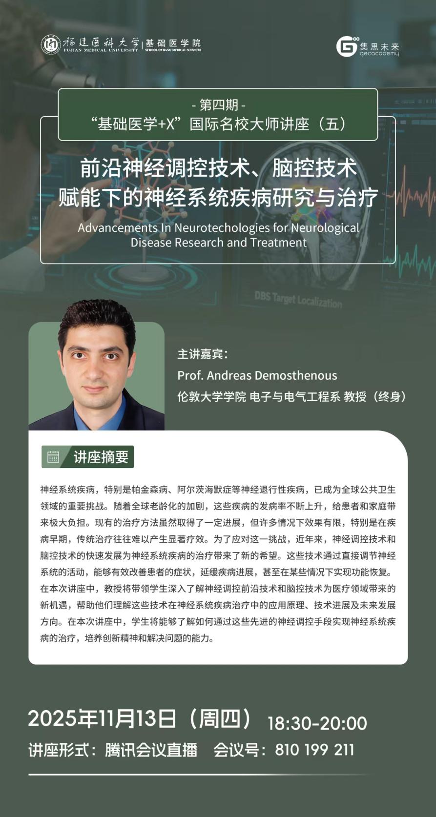 为促进学生了解以人工智能、大数据为代表的新一轮科技革命和产业变革下锚定基础医学疾病诊疗与研究的前沿研究方向与方法,探索医学与其他学科的交叉应用,培养国际化视野,探讨国际研究趋势和动态。羞羞漫画 联合天津集思教育集团继续开展第四期“基础医学+X”国际名校大师讲座,主讲嘉宾为来自全球一流高等学府和研究机构的9位知名教授。现将该系列讲座(五)相关信息发布见下: