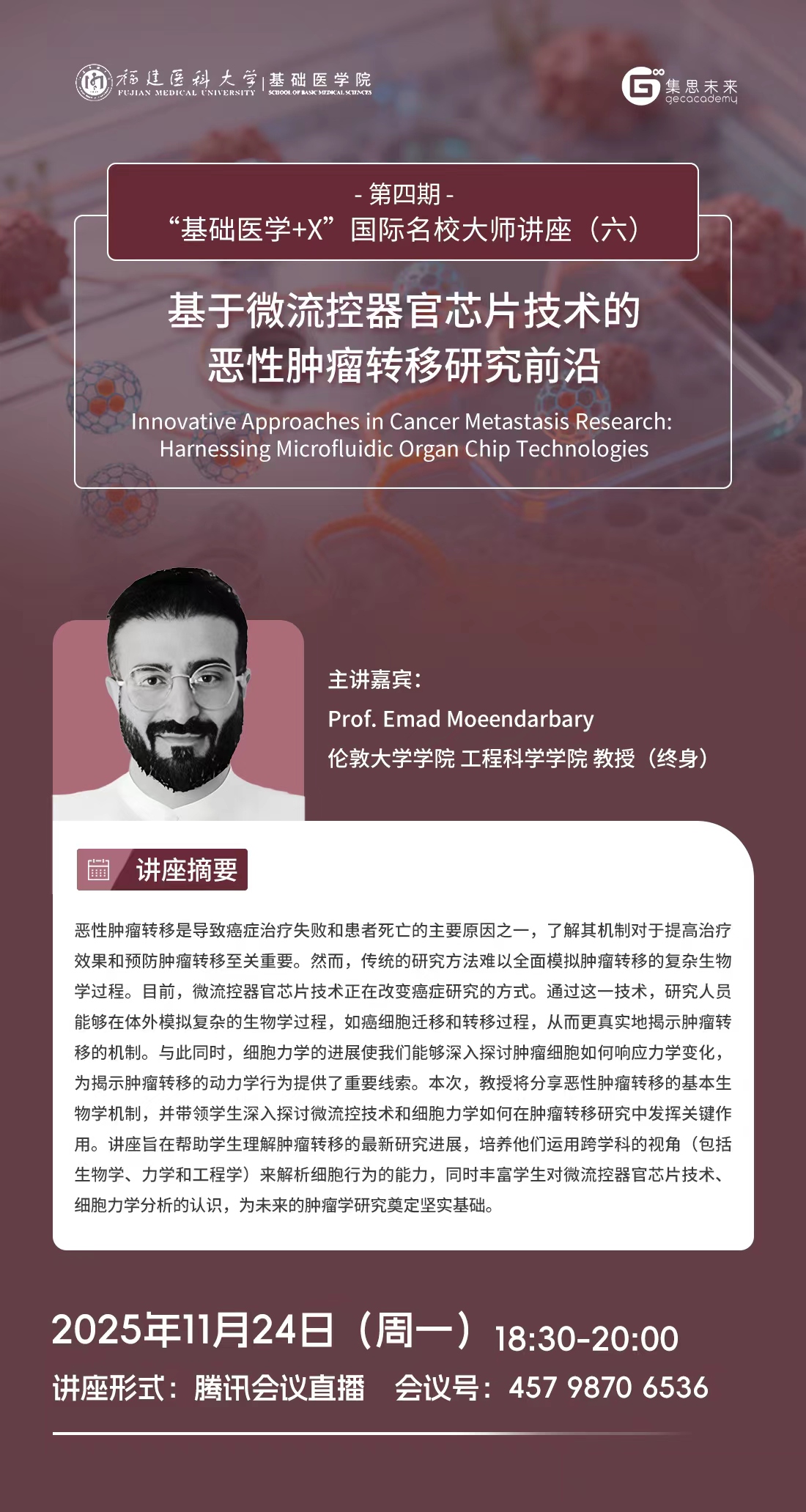 关于举办第四期“基础医学+X”国际名校大师系列讲座(六)的通知