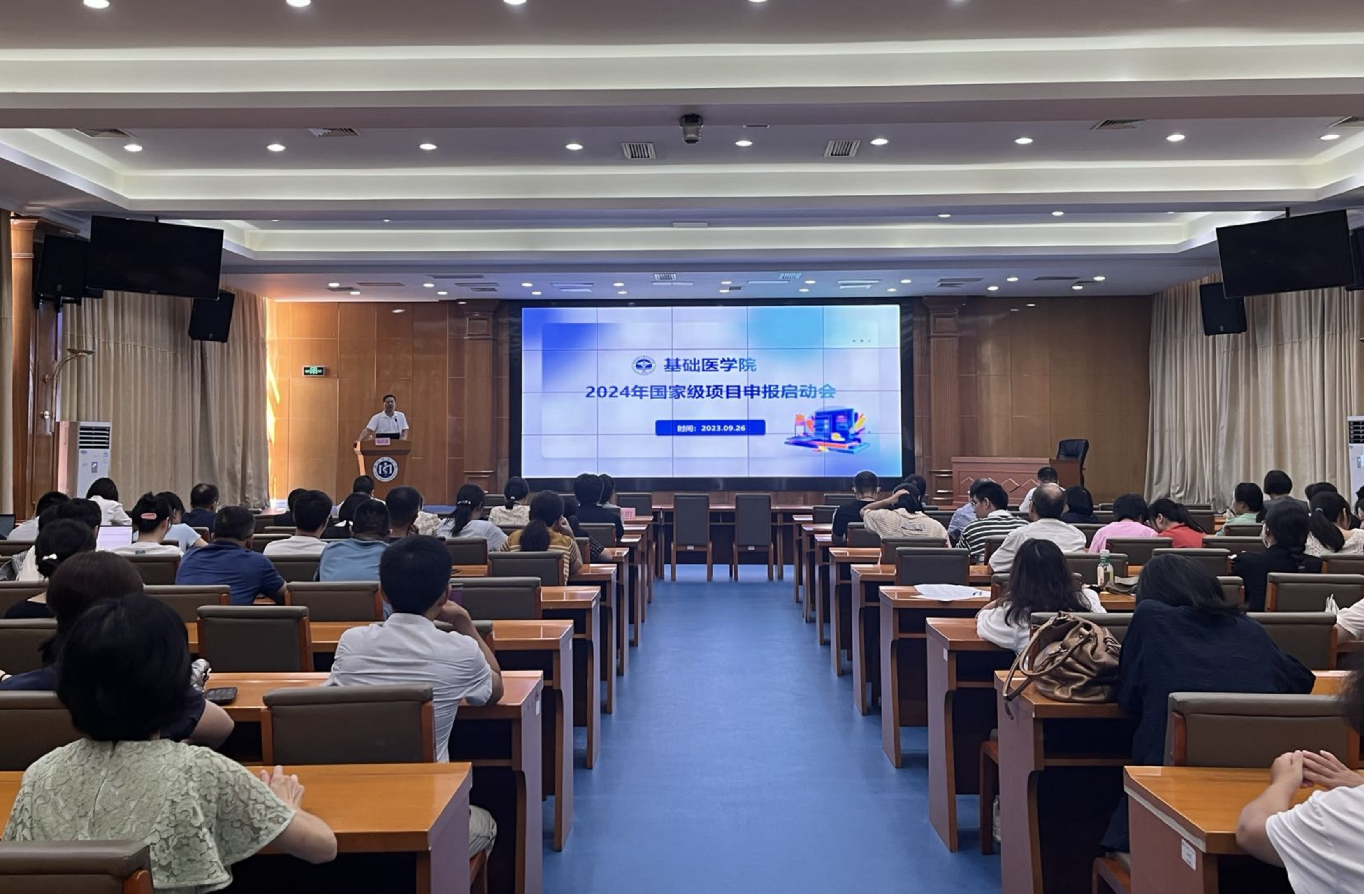 为了更好地支持教职工参与国家级项目申报,2023年9月26日,我院在学校第三会议室成功举办2024年国家级项目申报启动会。本次动员会由副院长陶武成主持,特邀曾于国家自然科学基金委员会医学科学部兼聘工作的刘玥博士作《从基金管理角度浅谈国家自然基金的申请》讲座,各学系/中心主任、55周岁以下教职工等100余人参加了本次会议。